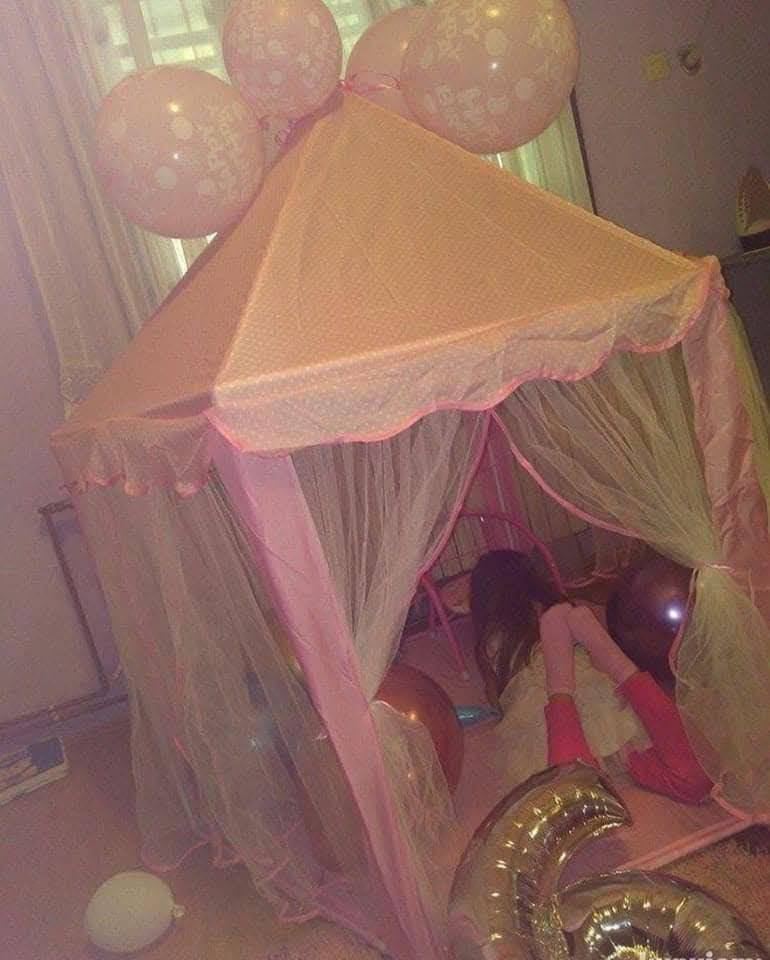 خيمة قصر سداسي للأطفال بتصميم مفتوح يدي مساحة لعب واسعة ومريحة 👸🏰، شكلها مميز وجذاب يخلي الطفل يعيش جو الأميرات والقصور بكل حرية.