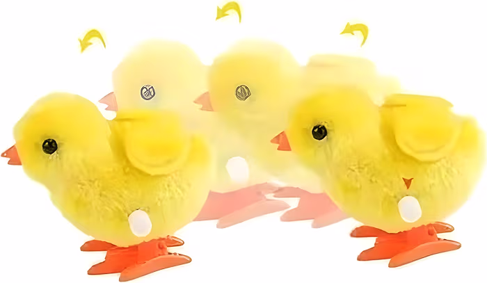 مجرد ما تلف الزمبلك وتسيبه، يبدأ الكتكوت يتحرك لقدّام بطريقة لطيفة تخلي الأطفال مبسوطين ومندمجين في اللعب.