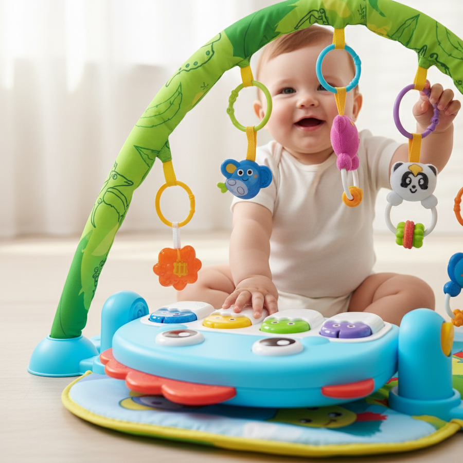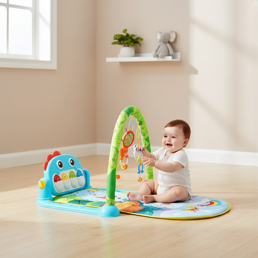 سجادة البيبي بيانو وملاهي أطفال تفاعلية وآمنة، موسيقى وبيانو وألعاب معلقة ومراية، بتنمّي حواس الطفل وتخلي وقت اللعب ممتع من أول يوم.