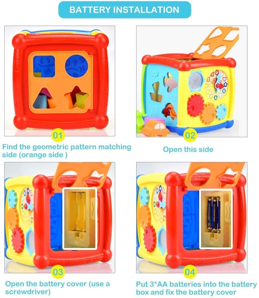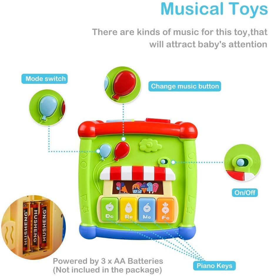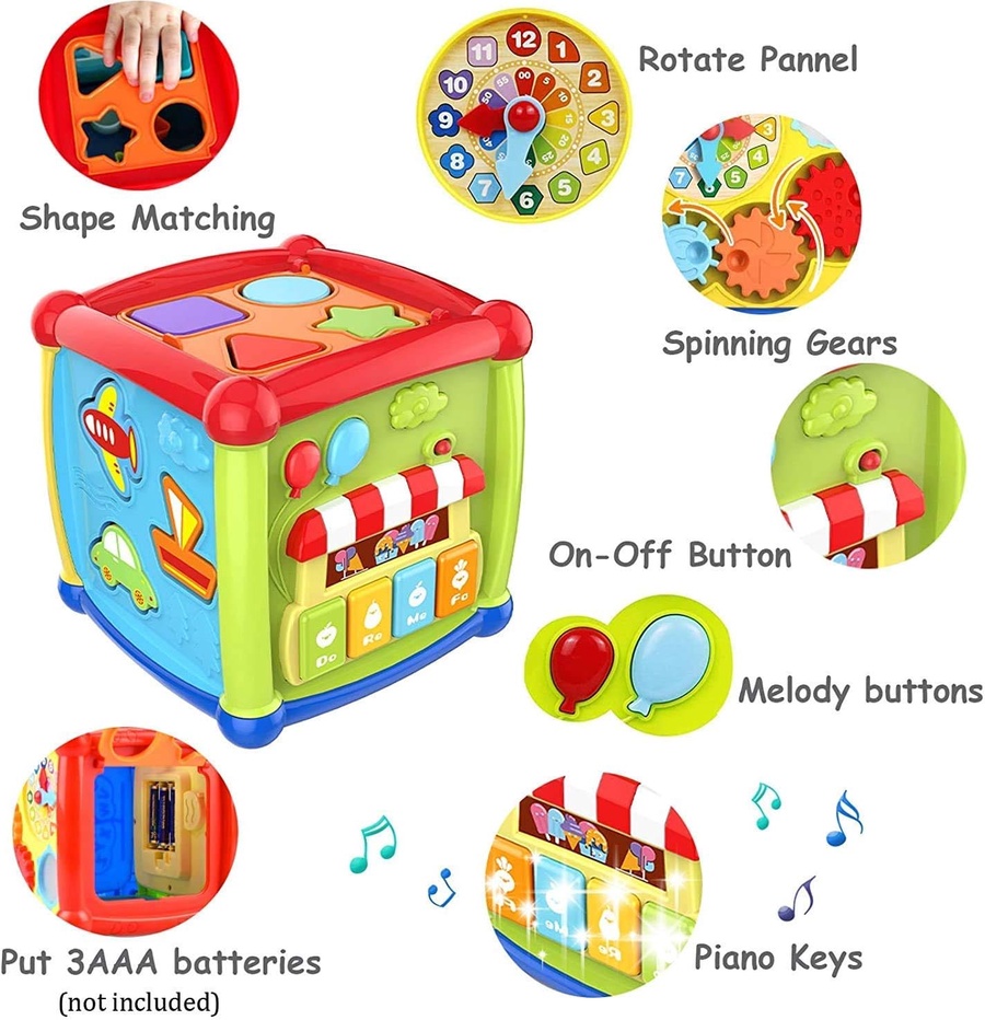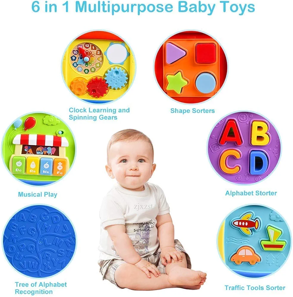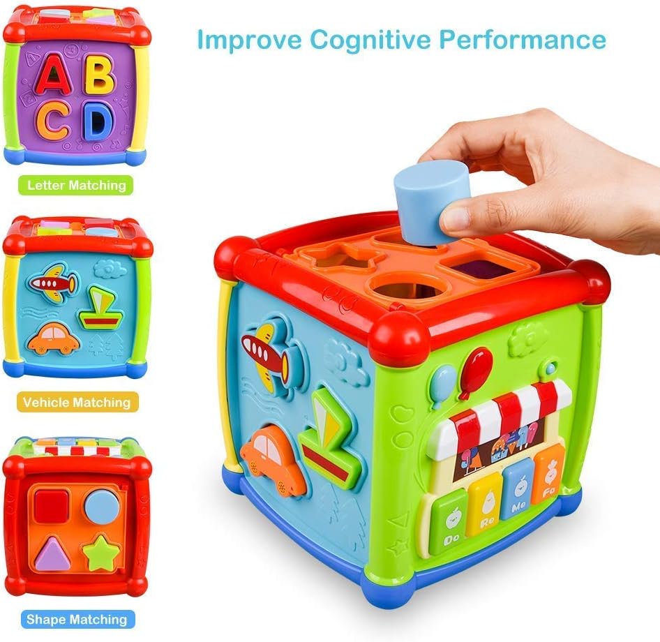 مكعب تعليمي متعدد الأنشطة 6 ألعاب في 1 يساعد الأطفال على تعلم الأشكال والحروف والألوان وتحسين المهارات الحركية من خلال التروس والفرز، العزف، والتفاعل الحسي
