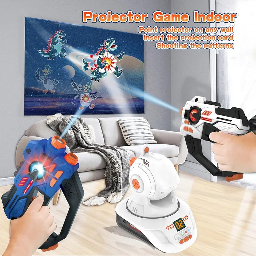 لعبة ترفيهية للأطفال والكبار تعتمد على جهاز بروجكتور صغير يعرض صور متحركة (ديناصورات – بط – أشكال كرتونية) على الحائط أو أي سطح،