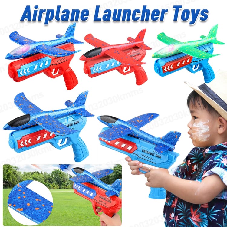 مسدس طيارات ممتع للأطفال – بيطلق طائرة مضيئة بتطير لمسافات بعيدة، خامة ممتازة وألوان متعددة للتحديات بين الأصحاب.