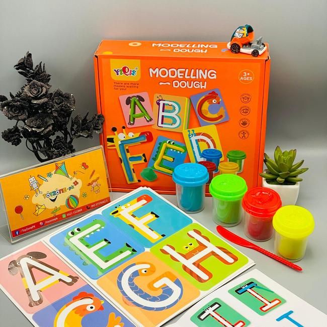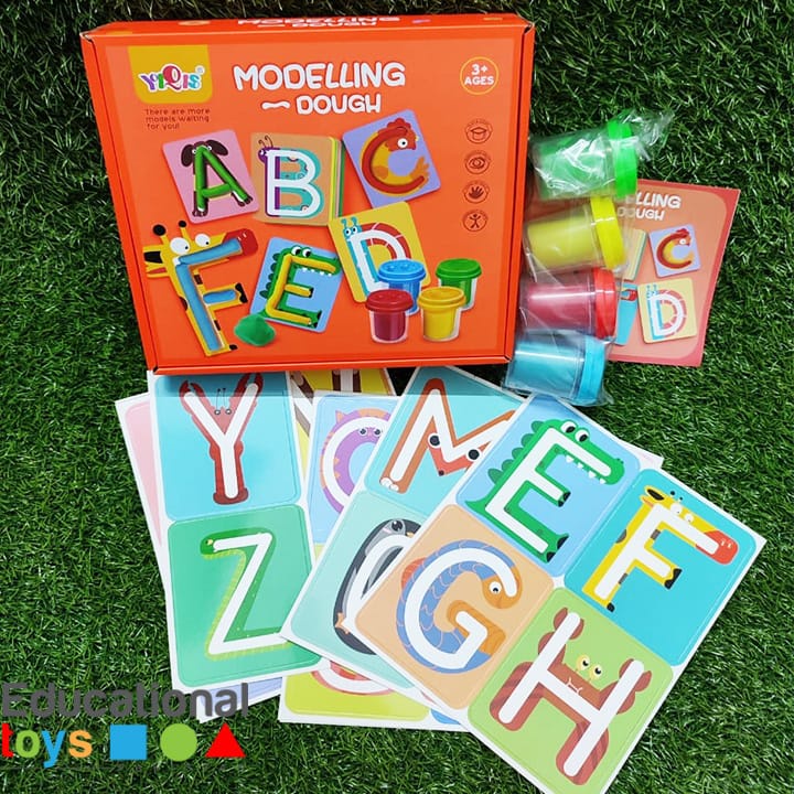 لعبة تعليمية ممتعة للأطفال بتجمع بين التشكيل بالصلصال و تعلم الحروف الإنجليزية.