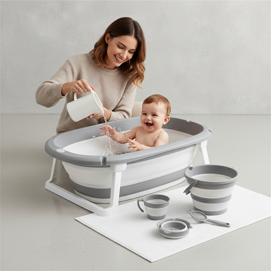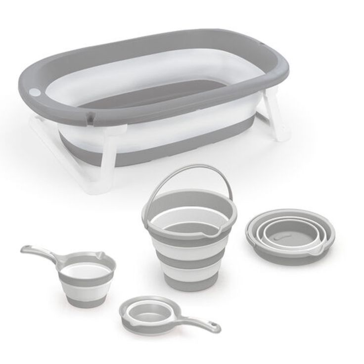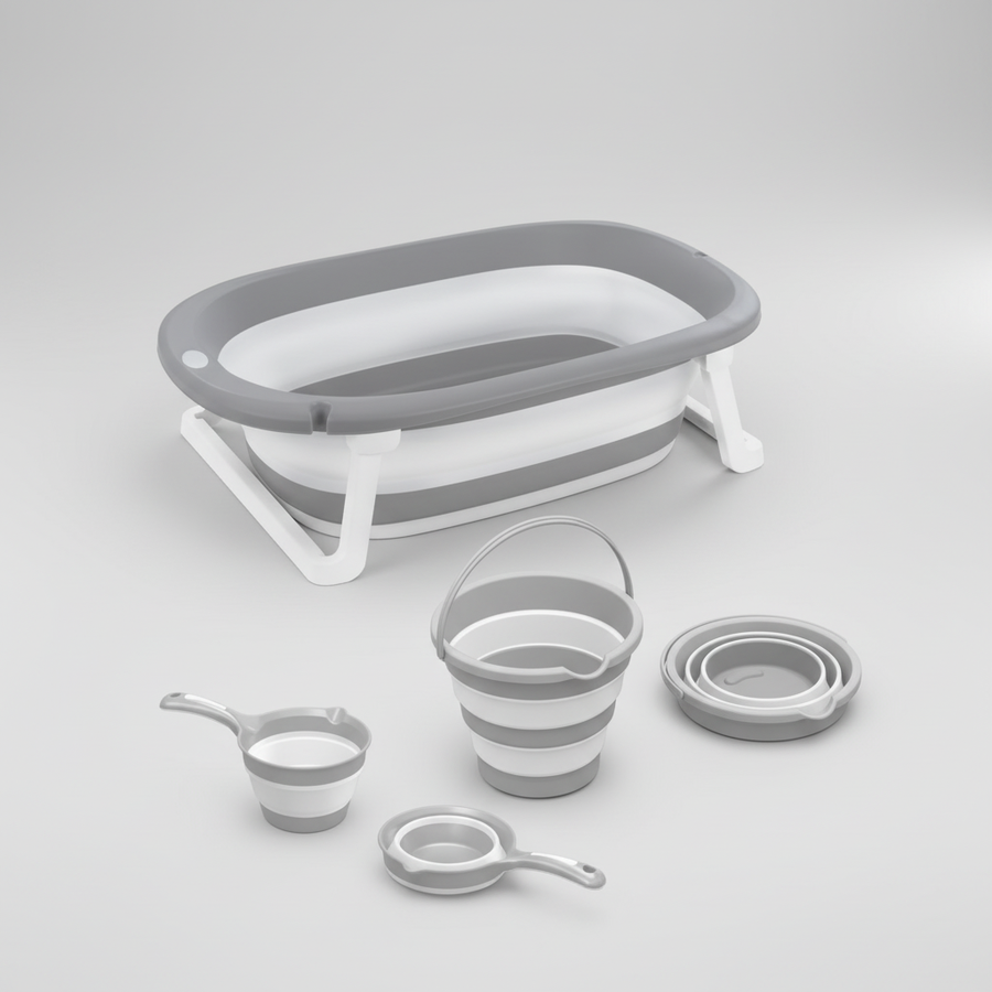 طقم بانيو عملي قابل للطي مزوّد بوسادة مريحة ودِلاء مرنة، مثالي لحمام آمن وسهل للرضع.