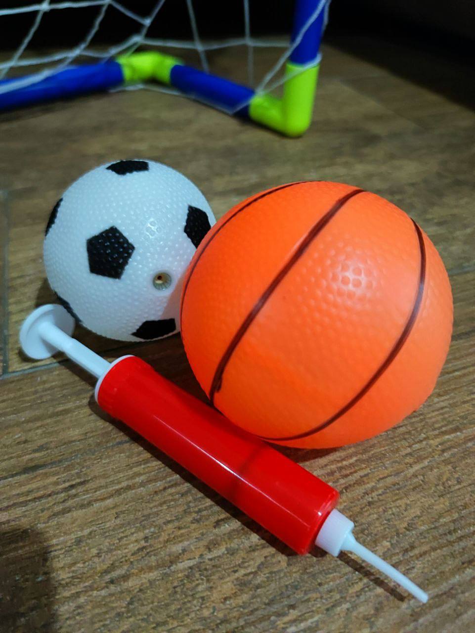 🧡 معاها كره باسكت وكره قدم صغيرين ومنفاخ