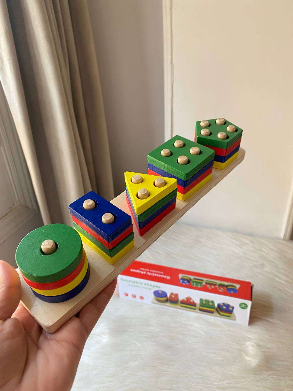 ترتيب اشكال هندسية 5×1) ⬅️ خمس اشكال هندسية 🔴⬛️🔻🔲🔶 ألتى يمكن أن توضع معا وفقا لعدد الثقوب فى منتصفها ⬅️ تستخدم أيضا القطع الخشبية فى تكوين اشكال مختلفة لتسلية ومتعة اكتر 🥳 👌 ⬅️ خشب عالى الجودة 👍 (مستورد) بتساعد الطفل على :_ * مطابقة الأشكال الهندسيه المختلفة * غرس مفاهيم الرياضيات فى وقت مبكر من خلال اللعب * التعرف على الالوان 🔴 🔵 ⚫️……